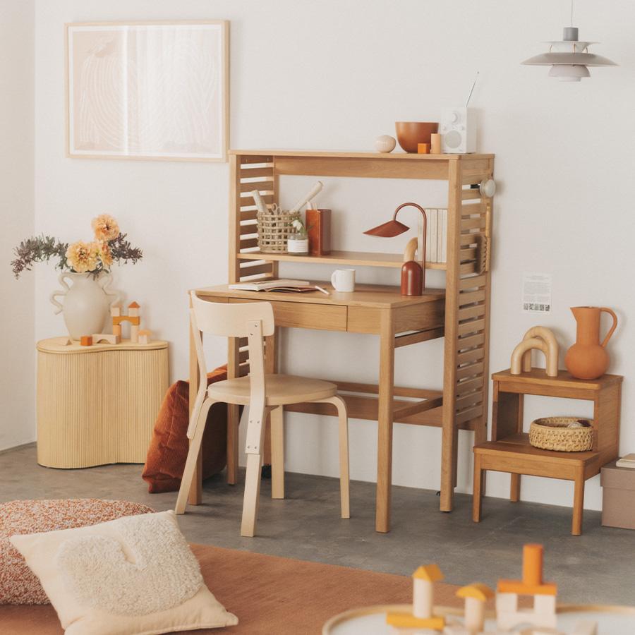 The theme is "PLAYFUL LEARNING". A small space surrounded by a ladder made of solid oak wood. It was designed with the hope that everyone will play, learn, and grow up with a strong imagination.