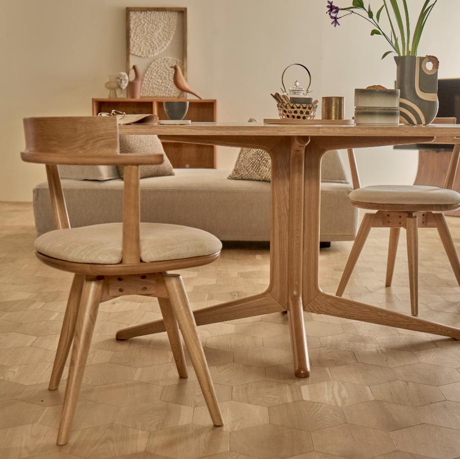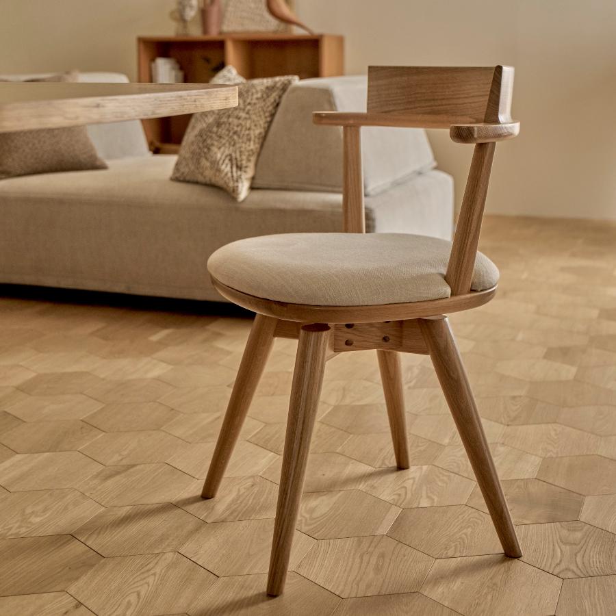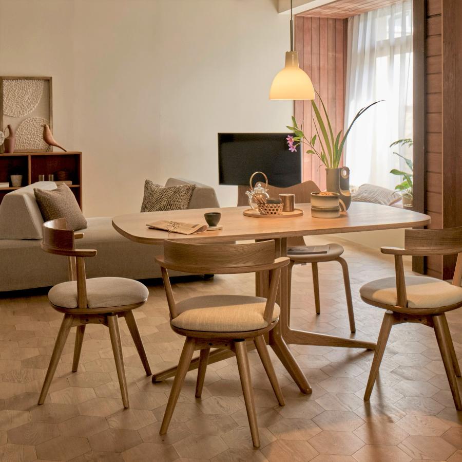 BALANCE, designed by the Danish design unit Says Who, is a dining series that combines design and practicality. Swivel chairs are convenient because you can rotate them while seated to pick up something or change your body's direction when standing up smoothly. They can fit into any compact space.