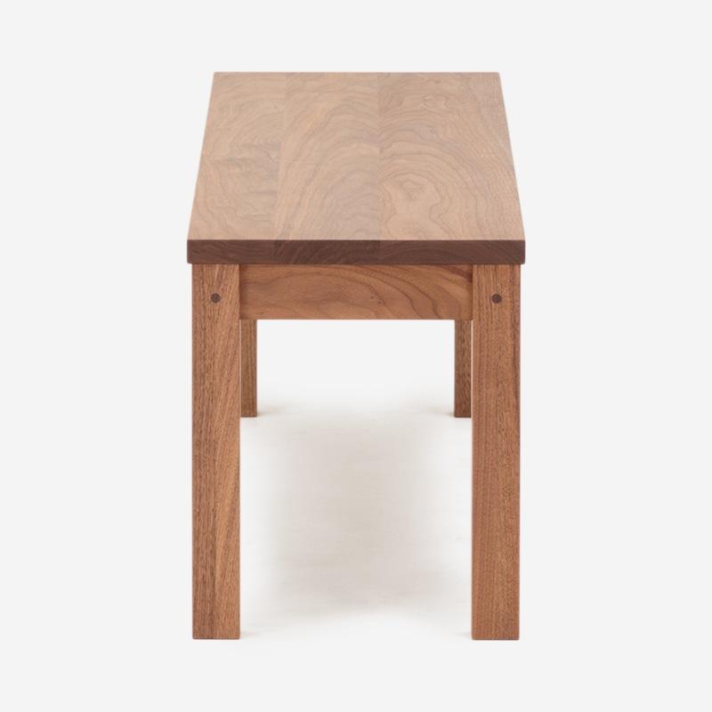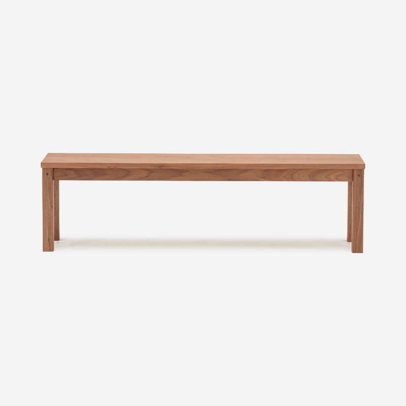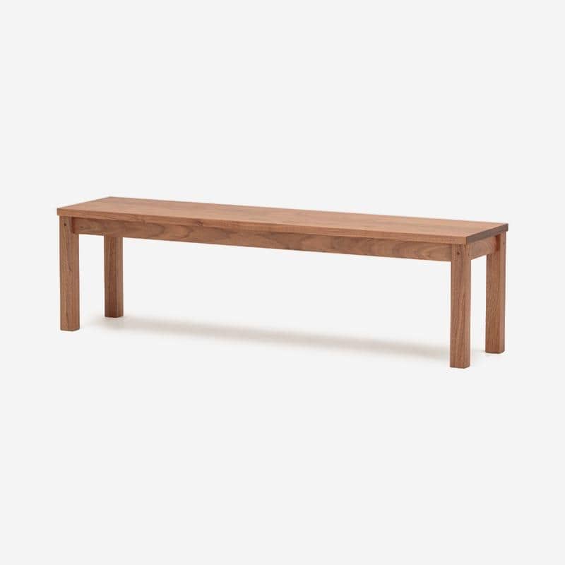 A made in Japan, walnut dining bench with wooden seating. REN Series features a simple design that brings out the beauty of solid wood, where its texture changes over the years.