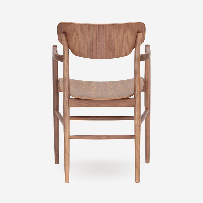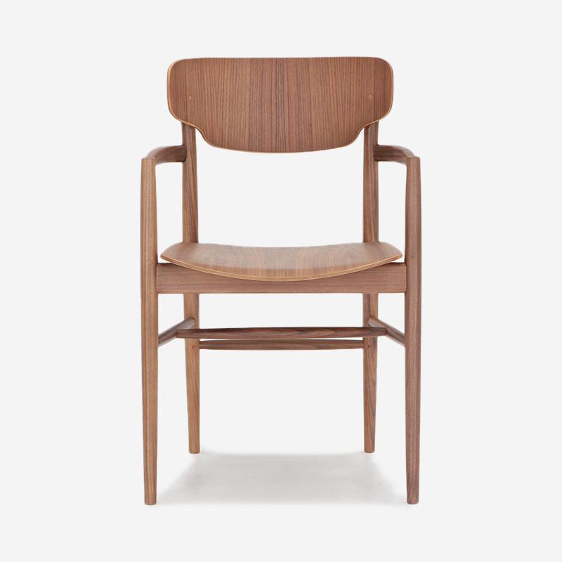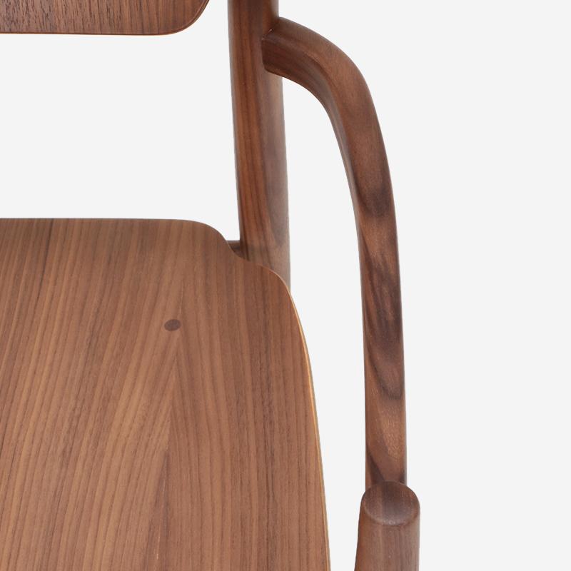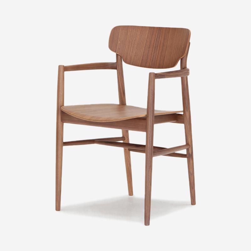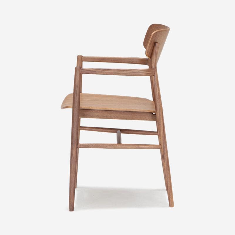 A walnut dining chair with a wooden seat. With a focus on a smart appearance and comfortable to sit in. Designed by Naoto Fukasawa in collaboration with Actus and made in Japan.