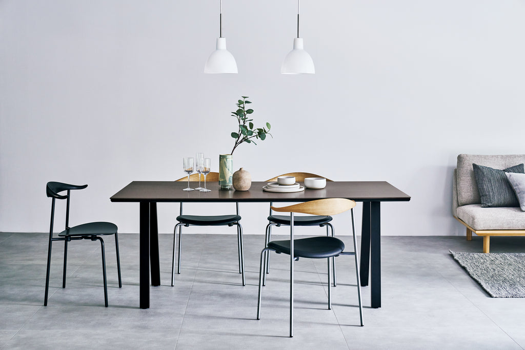 A highly functional dining table uses Spanish ceramic for its tabletop. The ceramic is resistant to heat, scratches, and abrasion. It does not allow dirt or water to penetrate, making it one of the best materials for dining. The legs can be assembled at different positions, allowing more room for different types of chairs. Available in 3 different types of ceramic. Visit our showroom to find out more. *Lead time is approximately 3 months upon order confirmation.