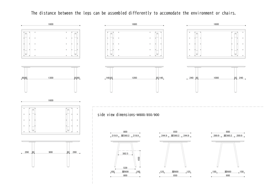 A highly functional dining table uses Spanish ceramic for its tabletop. The ceramic is resistant to heat, scratches, and abrasion. It does not allow dirt or water to penetrate, making it one of the best materials for dining. The legs can be assembled at different positions, allowing more room for different types of chairs. Available in 6 different types of ceramic. Visit our showroom to find out more. *Lead time is approximately 3 months upon order confirmation.