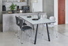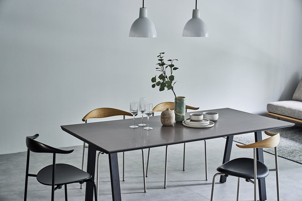 A highly functional dining table uses Spanish ceramic for its tabletop. The ceramic is resistant to heat, scratches, and abrasion. It does not allow dirt or water to penetrate, making it one of the best materials for dining. The legs can be assembled at different positions, allowing more room for different types of chairs. Available in 6 different types of ceramic. Visit our showroom to find out more. *Lead time is approximately 3 months upon order confirmation.