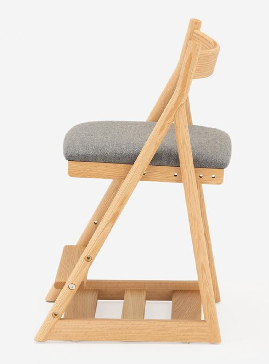 ACTUS's original chair with adjustable height, seat placement and leg rest. When one sits, the weight turns on the stopper to control the movement of the chair.