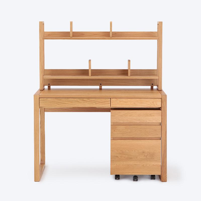 The Foppish Oak Desk & Chest Set (High Shelf) comes from the Foppish Series that was created with the concept of long-life design. The items are created to be of high quality and durability. A Wooden hook is in-built at the side of the table for hanging items and the chest has wheels for easy handling and shifting.