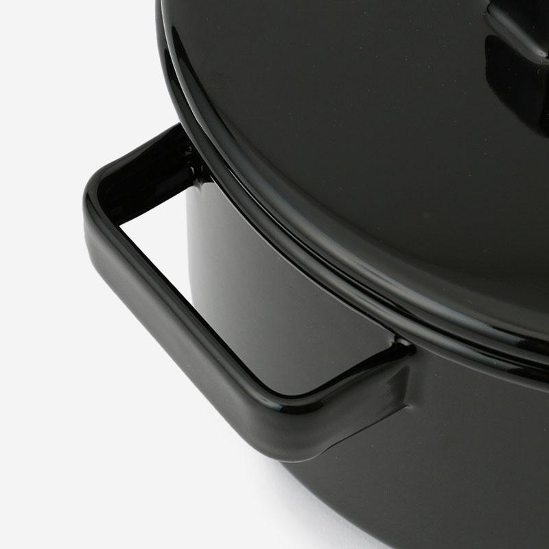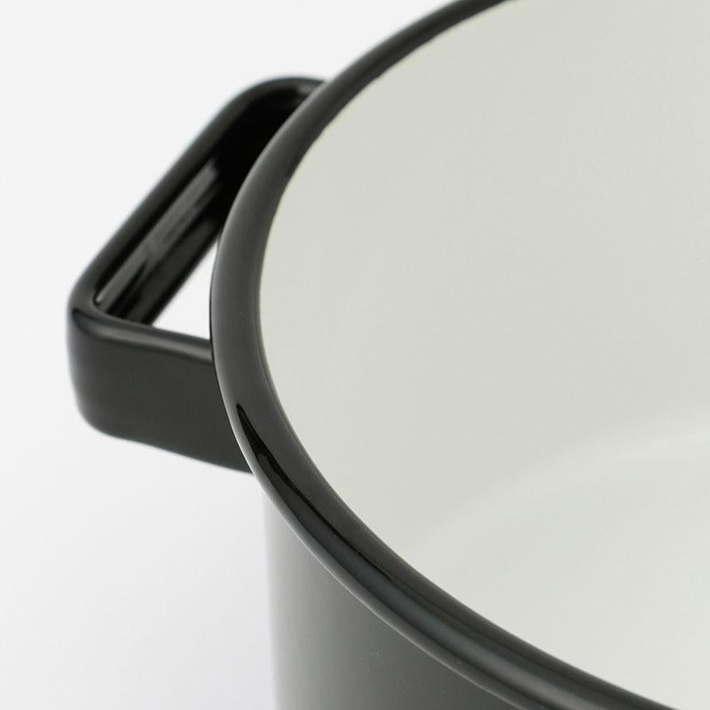 The two-handed enamel pot features a clean, functional design and a large deep bowl, perfect for making huge portions of sauces, soups, and stews. The enamel coating on the steel plate makes the pot resistant to acid.
