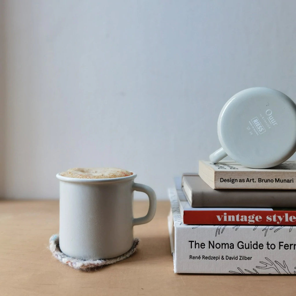 The Ouur Collection is a lifestyle brand by KINFOLK that focuses on simple designs with classic silhouettes and neutral colour palettes. The enamel mug is perfect for drinking hot chocolate or coffee on a cold day.