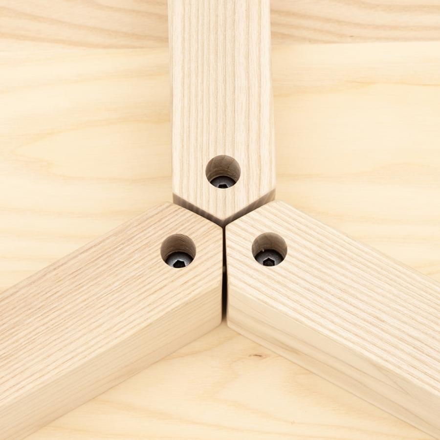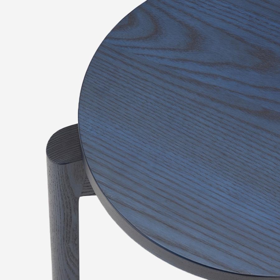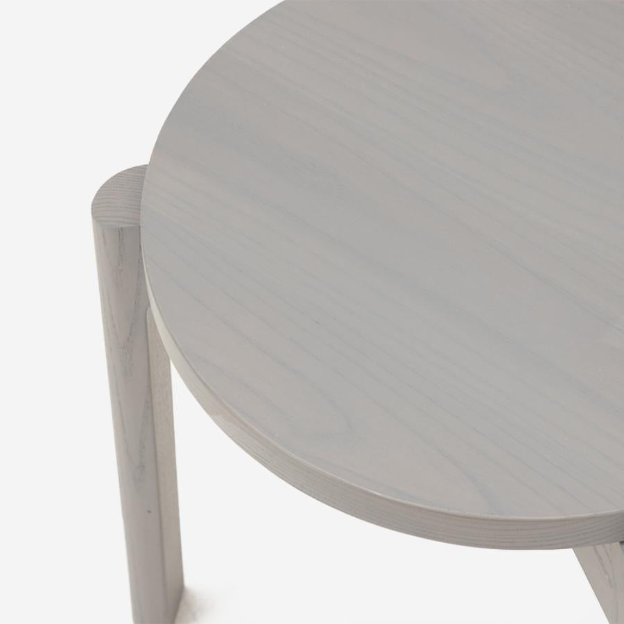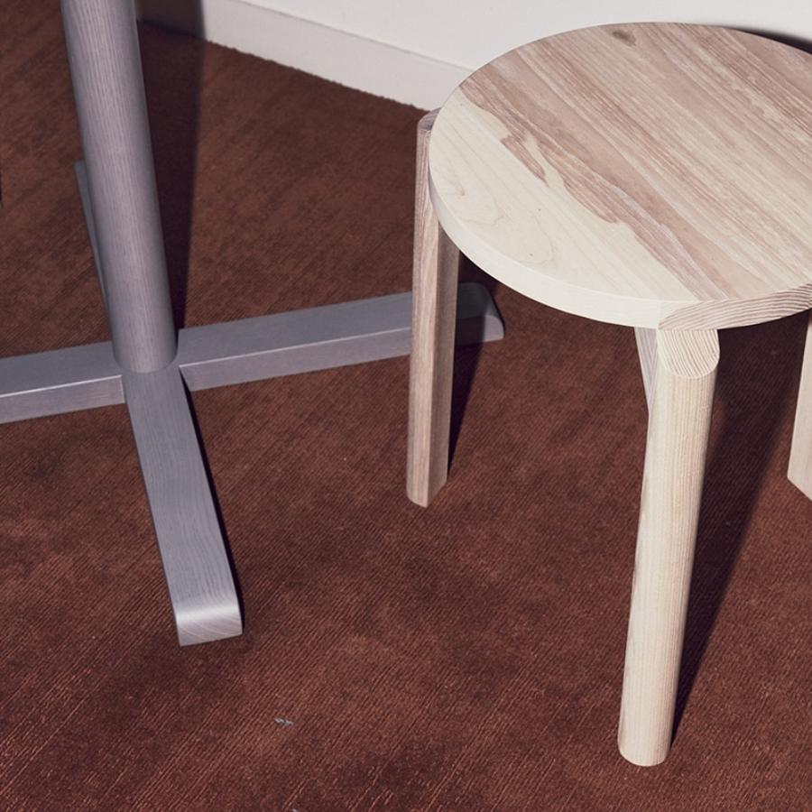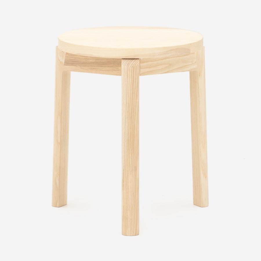 The wooden seat allows for flexible use, such as a side table or pedestal at the entrance or bedside, in addition to sitting at a table. The stools can be stacked not only with each other but also with other chairs in the series to make effective use of space.